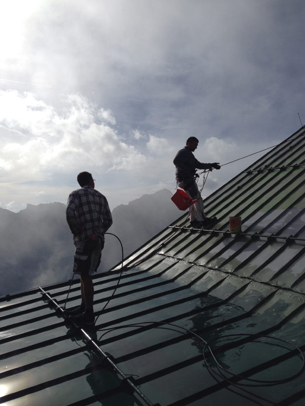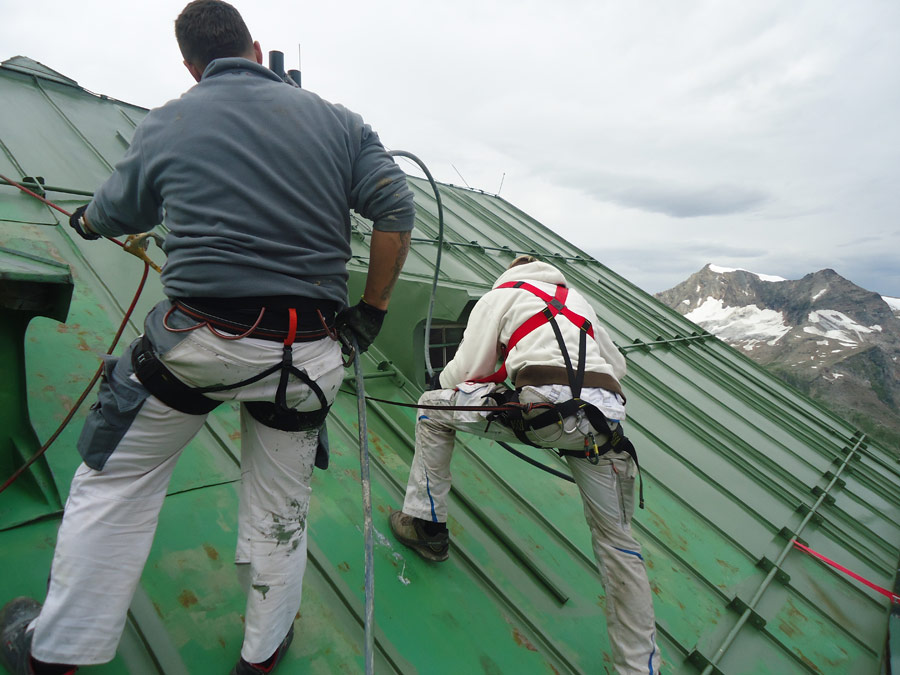 dem Gerüstbau auf über 1.900m, oder auch die Erneuerung der Korrosionsschutzanstriche.